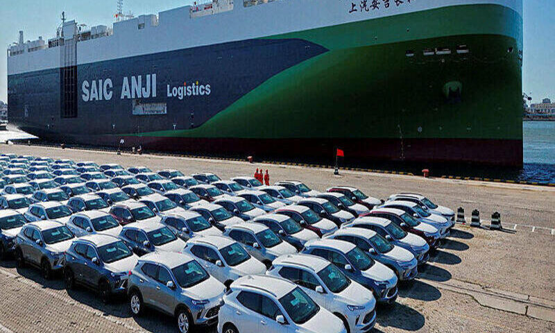 מכוניות סיניות ממתינות להעמסה על ספינה (צילום: AFP)