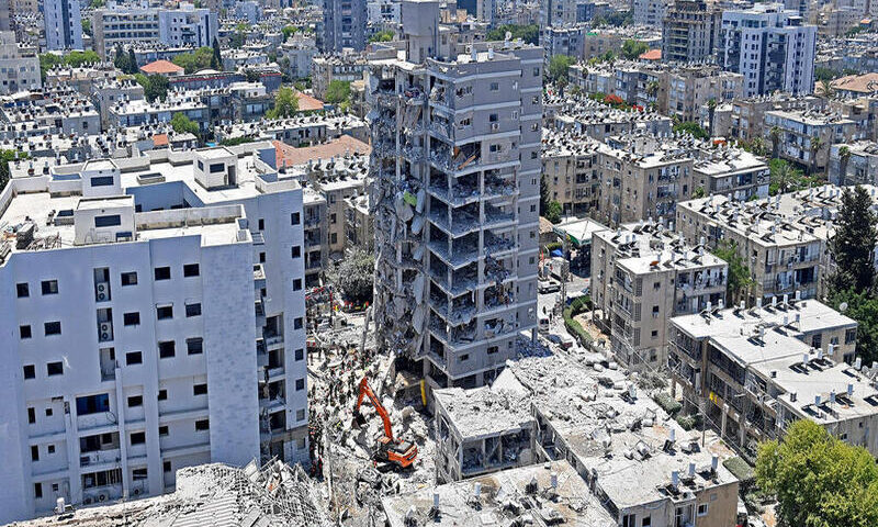 בניין בבת ים שנפגע מטיל איראני (צילום: קובי קואנקס)